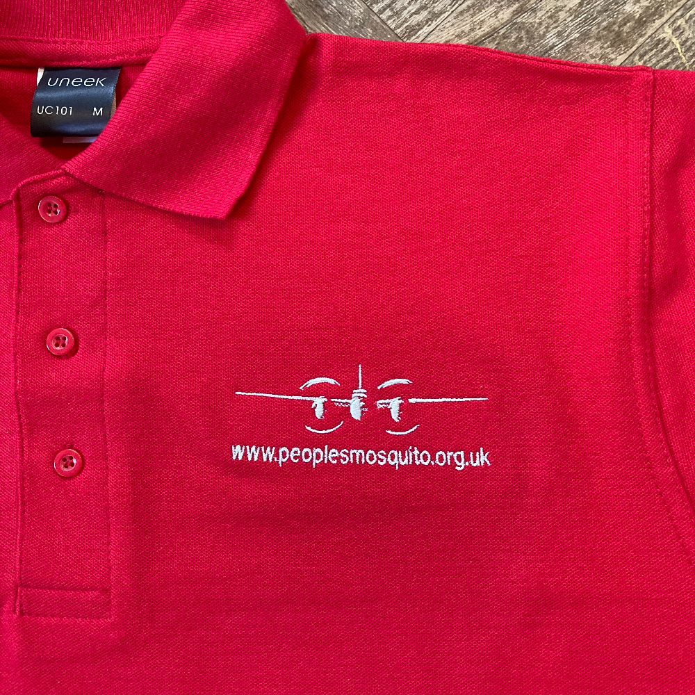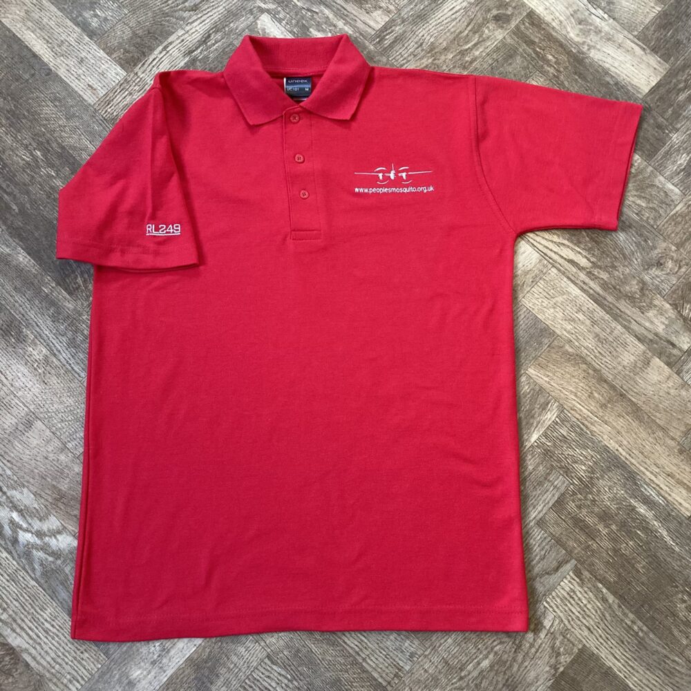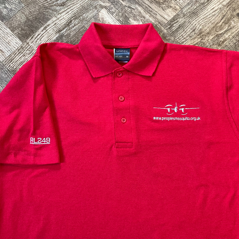 Our TPM Mosquito Intruder Polo shirt in Classic Red adds a tasteful splash of colour to your wardrobe – proudly depicting our exclusive Intruder logo on the left chest, courtesy of www.aircrafft.co.uk , and our RL249 registration on the right sleeve, both in contrasting silver embroidery for a clean, contemporary look.